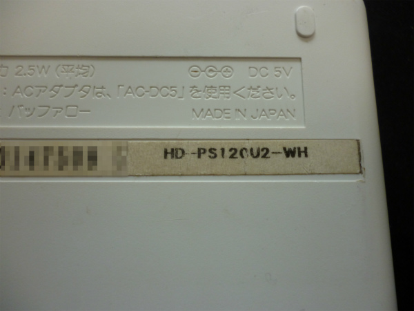 今回はバッファロー製 ポータブル外付けハードディスク HD-PS120U2-WHからのデータ復旧です。